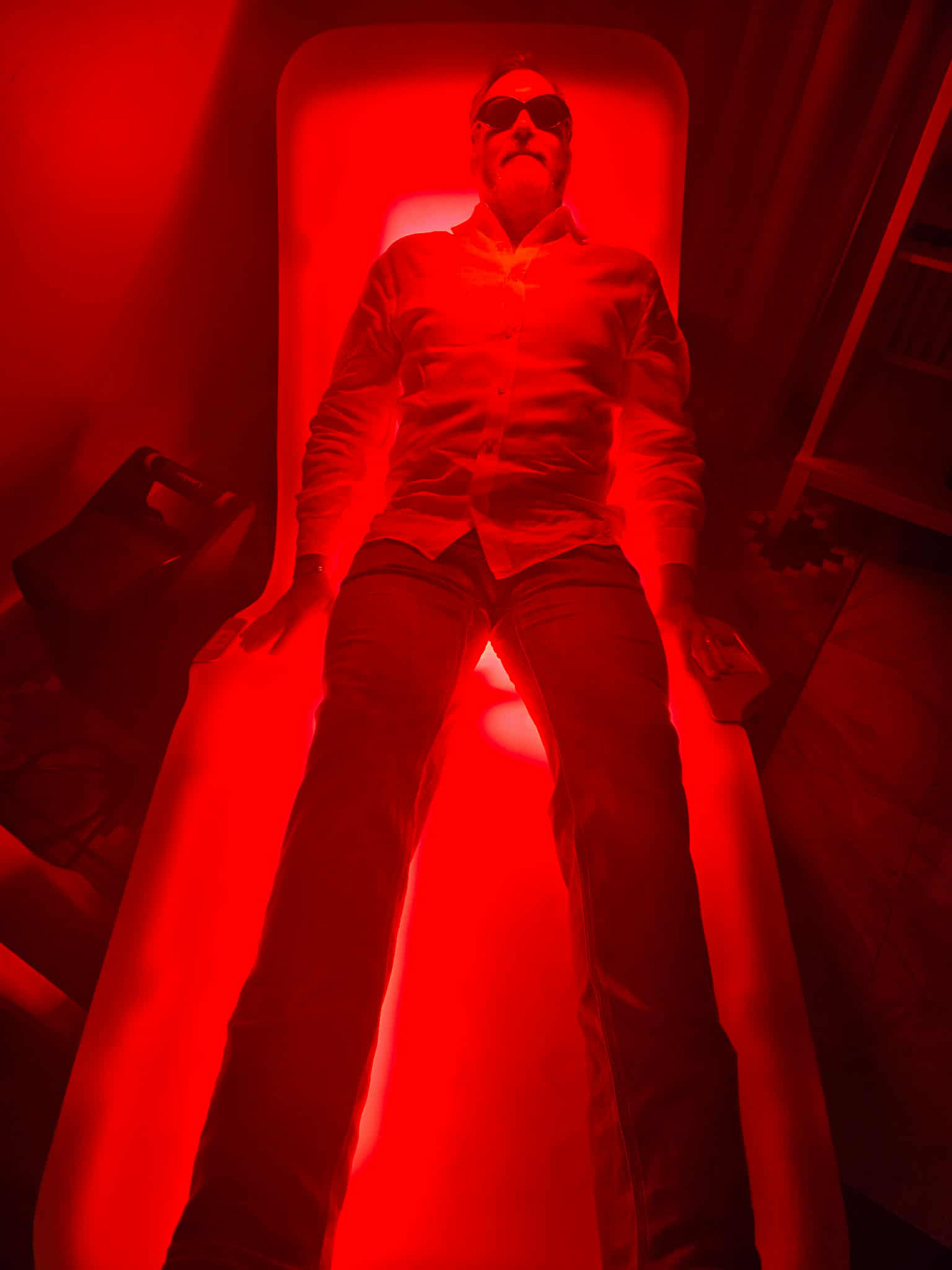 Our C60 Power team members are big believers in stacking their wellness routines. Here, our own Chas Herrin is using a Red-Light Lounger: