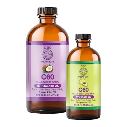 We use 99.99% pure sublimated C60 (never exposed to solvents) in 100% certified organic, healthy oils.