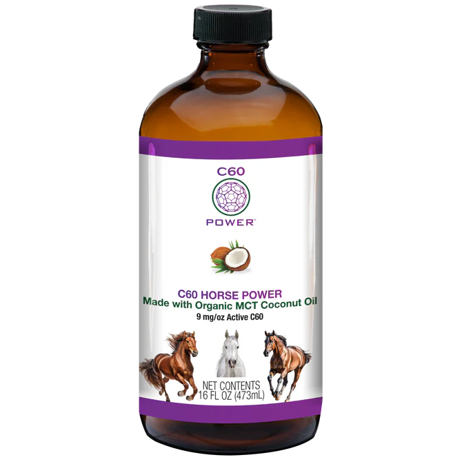 C60 Power’s C60 in Organic MCT Coconut Oil for horses is made with 100% certified organic oils and 99.99% pure sublimated C60 (never exposed to solvents) with maximum concentration. C60 Power is professionally formulated and tested for purity, quality, concentration, and maximum bioavailability and made in the USA.